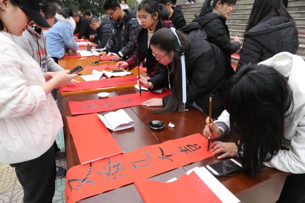 近日,衢职院书法协会举办了“把学校祝福带回家”主题书法活动,以“新春对联送温暖,师生执笔传祝福”为宗旨,让全校师生“零距离”感受传统文化的魅力。