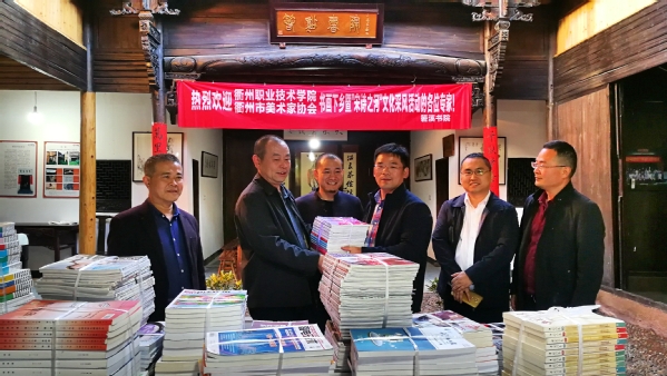 11月9日,开元网页版书画协会和衢州市美协书画家来到常山县招贤镇高埂村箬溪自然村,参加“宋词之河”采风活动,并捐赠图书300多册。