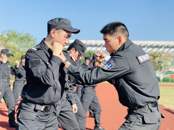 近日,开元网页版辅警班首批新生走上操场,真刀真枪地上了一堂基础技能课。衢州市公安局特警支队作训科科长程腾作为特派教练还现场示范,手把手教他们徒手格斗技巧。图为上课场景。