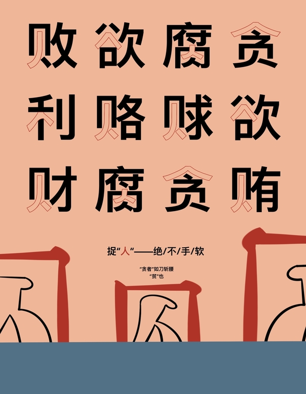 作品介绍:突出“贿赂”“贪腐”“财利”等负面词汇中“人”的部分。作品《捉“人”》正是提醒大家,要管好自身,否则人将被“囚”。