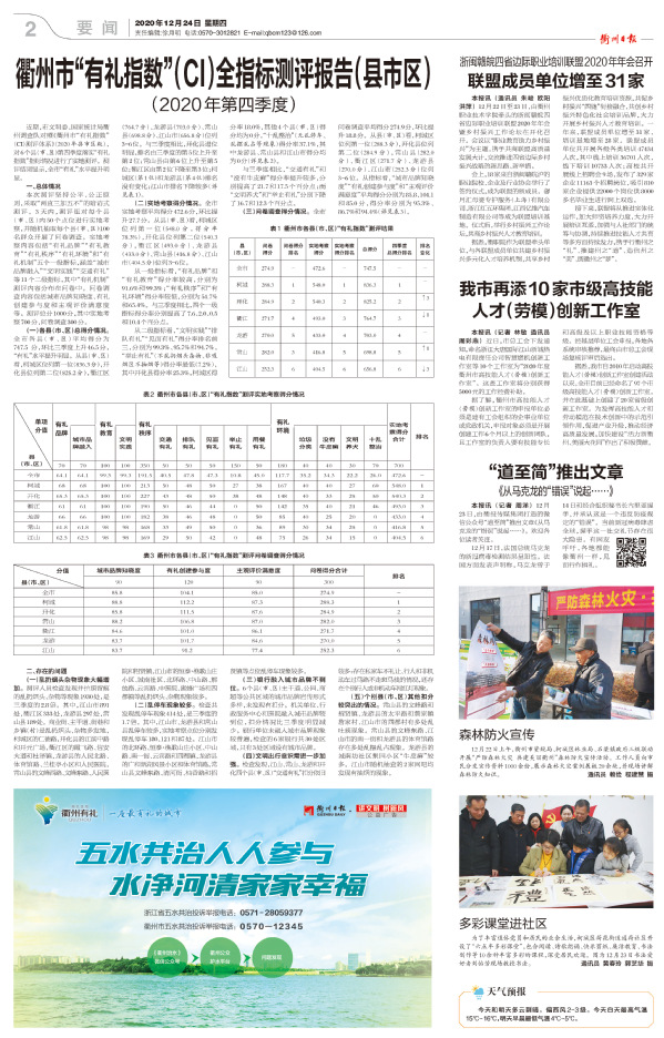 《衢州日报》2020年12月24日 要闻版 报道 通讯员 朱峻 欧阳洪萍