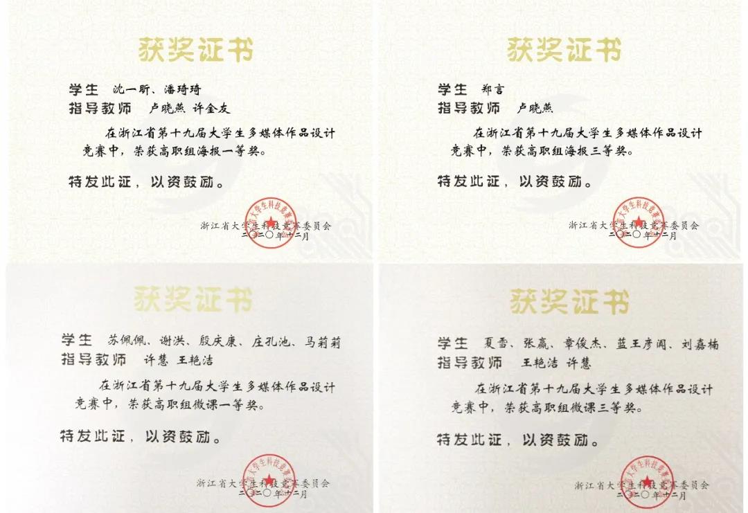 近日,开元网页版斩获浙江省第十九届大学生多媒体作品设计竞赛一等奖2项、三等奖2项。