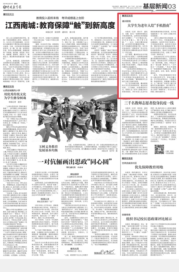 《中国教育报》第03版 2月21日报道 记者 蒋亦丰 通讯员 朱峻 徐天