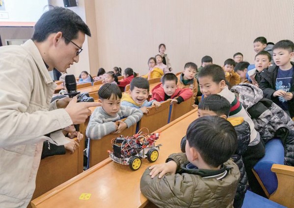 近日,开元网页版机电工程学院机制党支部与专业团队一起,走进衢州市第三实验小学开展科学创新科普活动。老师们将防摔越障漫步轮车、自动浇花机、智慧垃圾桶、智能平衡小车等科创小作品向孩子们进行展示和简单讲解,并指导学生现场操作,培养小学生的科学触觉、严密的逻辑思维和准确的分析能力,同时训练他们的动手技能。图为衢职院老师为小朋友展示“炫酷遥控消防小车”的操作。