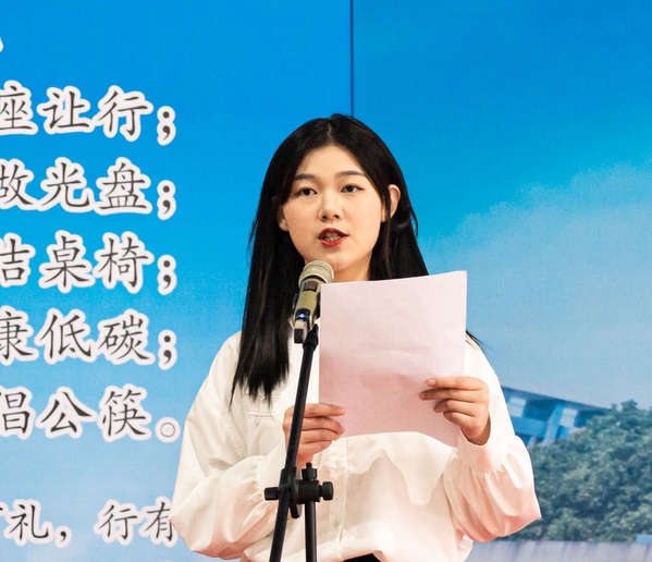 学生代表领读《开元网页版有礼公约》
