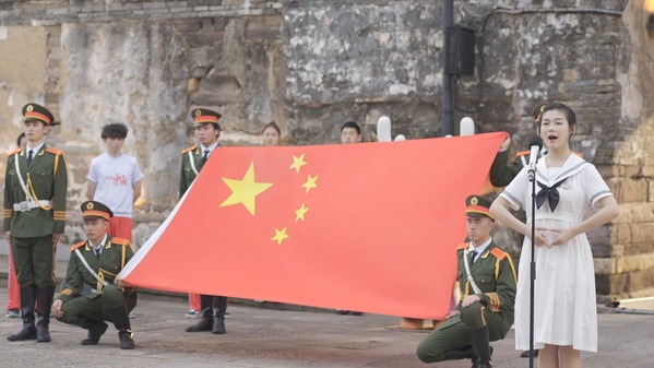 图为衢职院国旗护卫队队长、衢州市特殊教育学校优秀助教顾霓桑用手语录制宣讲云课《手语国歌--无声世界凯歌前行》。