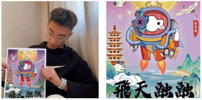 作品介绍:《飞天融融》中的“雪容融”是宇航员的形象,一方面体现了中国科技事业蓬勃发展,另一方面也寓意着中国梦的实现充满无限可能。
