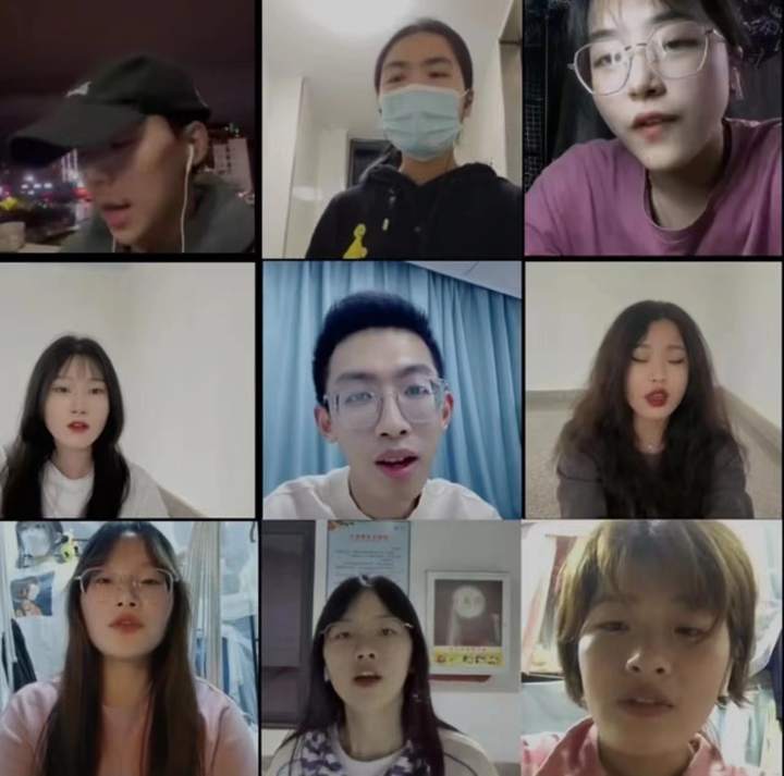 “这世界有那么多人,我有多幸运,我有我们……”学校音悦社的10余名同学连麦演唱《这世界那么多人》,用最诚挚的告白向奋战在防疫一线的工作人员致敬。“在疫情大考中,我们身处其中的每个人都是答卷人。老师和志愿者们在困难面前不屈不挠、亲身示范,用信念和行动激励大家勇敢前行。万物复苏必有时,疫去安来春可期,衢州加油!”学校音悦社社长鲍敏说。