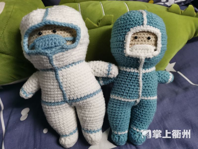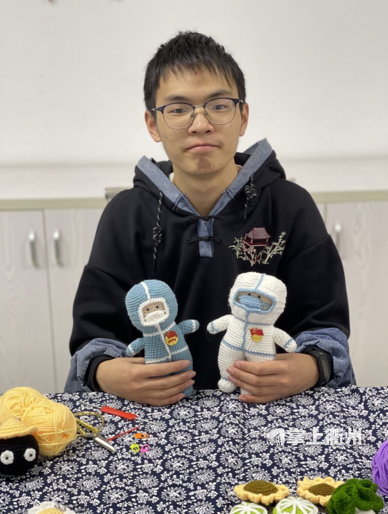 “‘衢大白’是3月16日出生的,‘衢小蓝’是3月22日。”范骏成告诉记者,疫情下学校实行封闭管理,为了丰富同学们的生活、缓解大家的情绪,match学校团委举办了一次“青春接力 共同抗疫”线上才艺展示活动。范骏成也积极参加,作为学校手工文创社团的骨干,他从高二就开始学习编织,因此决定用钩针编织的形式来进行创作,致敬奋战在抗疫一线的医护人员、领导老师和志愿者们。