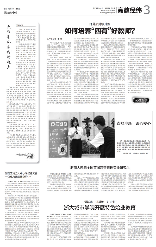 《浙江教育报》2022年9月9日 通讯员 欧阳洪萍 骆黎阳