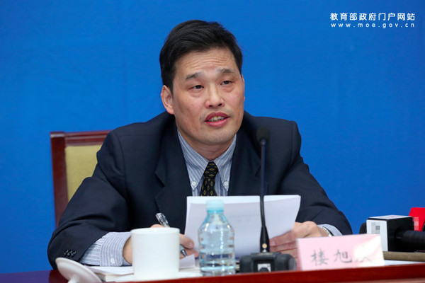 教育部发展规划司副巡视员楼旭庆介绍支持应用型本科高校发展的工作情况及下一步工作考虑。(中国教育报记者 张劲松/摄)
