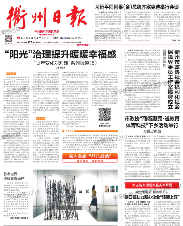 《衢州日报》2023年5月27日 报道 记者黄紫依 顾欣桐 摄