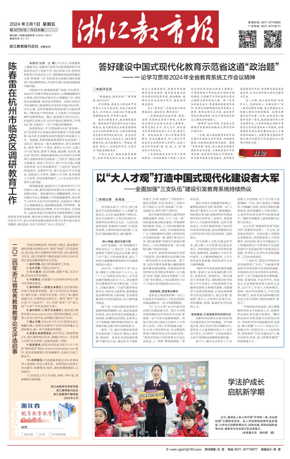 《浙江教育报》头版 2024年3月1日 报道 本报记者 朱郑远