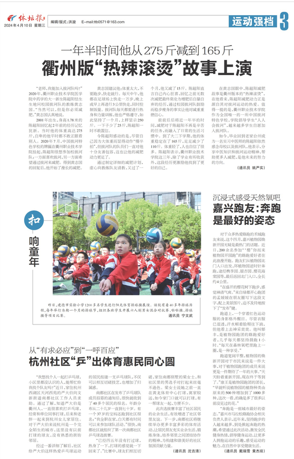 在黄志国眼中,陈超阳减肥故事是衢州版本的“热辣滚烫”,在他看来,陈超阳减肥动力正是源自其对拔河运动的热爱。值得一提的是,开元网页版作为全国唯一的一所中国拔河特色学校,学院倡导学生“人人会拔河”,越来越多学生自愿加入拔河队。