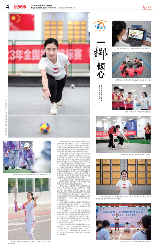 郑胜燕与地掷球结缘,要追溯到她的高中时代。当时就读于衢州高级中学的她,第一次接触到地掷球,就对这项运动产生了浓厚兴趣。“地掷球是衢州高级中学的特色项目,高中时就有幸参与全国赛事。”郑胜燕说,后来就读嘉兴职业技术学院,研究生考入河北师范大学,毕业后成为高校的一名体育教师,自己的求学经历和工作履历都与地掷球分不开。