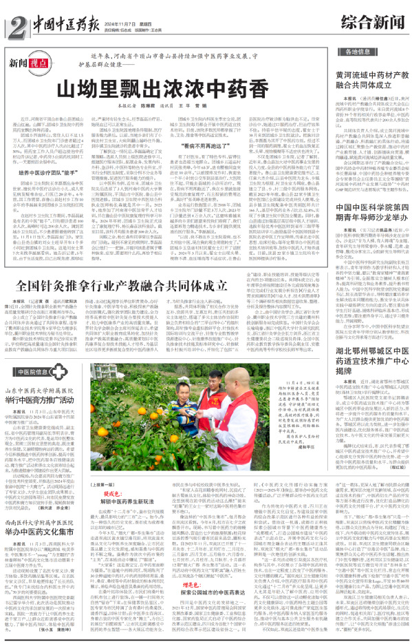 《中国中医药报》2024年11月7日 报道 本报讯 记者黄蓓 通讯员 欧阳洪萍