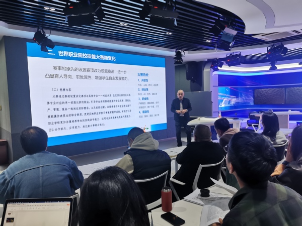 与此同时,浙江经济职业技术学院文化艺术学院院长朱红亮教授,为我院教师带来了题为《炫技青春 能创未来》的专题讲座。朱教授以世界技能大赛为切入点,详细剖析了大赛的最新动态、技术规则及评价标准,不仅为我院教师提供了指导职业技能大赛的专业视角,更为学生们未来的职业发展指明了方向,鼓励他们在技能比拼中绽放青春光彩,创造美好未来。
