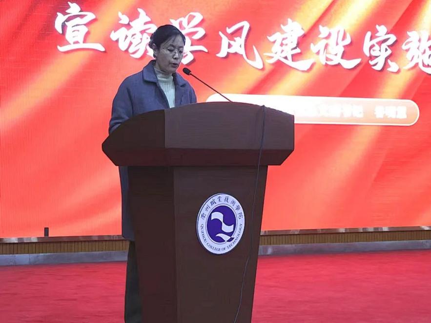 谷明慧宣读《信息工程学院关于进一步加强学风建设工作的通知》。班主任代表郑啸威老师和学生代表姚烨结合个人经历,强调了学风建设的重要性,并提出了纪律、责任、持续学习、团队合作和实践创新的重要性。
