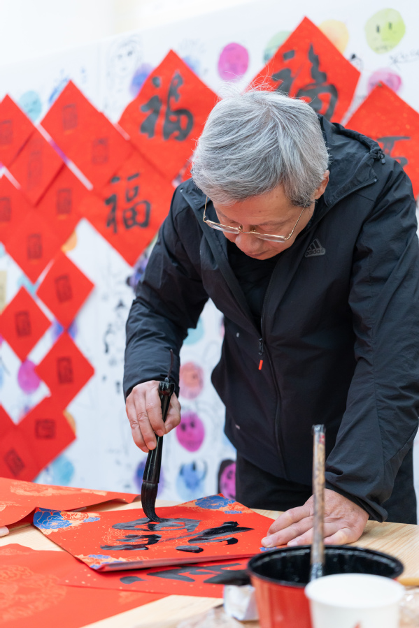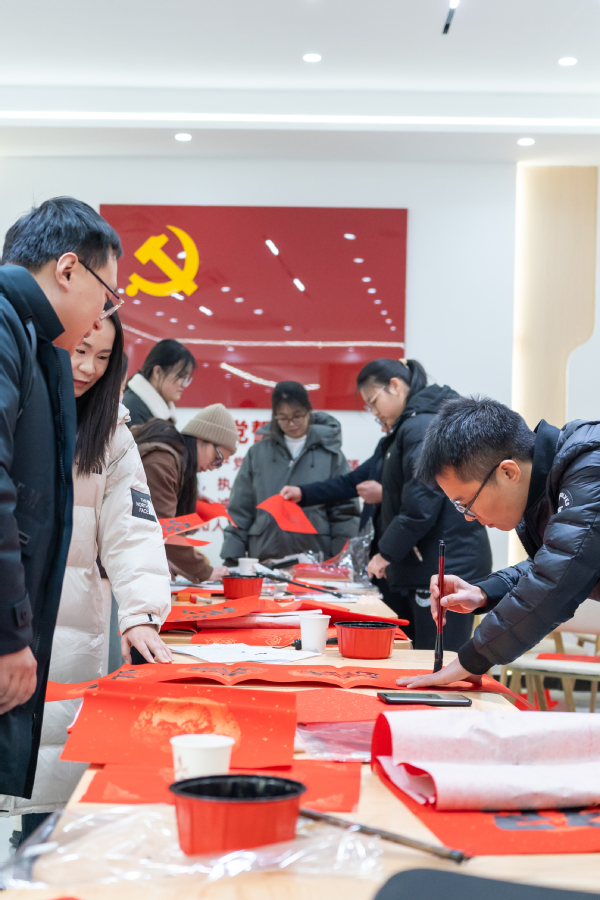 在活动现场,书画协会的老师们挥毫泼墨,书写了一幅幅充满祝福的“福”字和对联,洋溢着喜庆的氛围。师生们纷纷排队领取属于自己的新年礼物,脸上洋溢着幸福的笑容。这些亲手书写的“福”字和对联不仅传递了美好的祝愿,更增进了师生之间的感情交流。