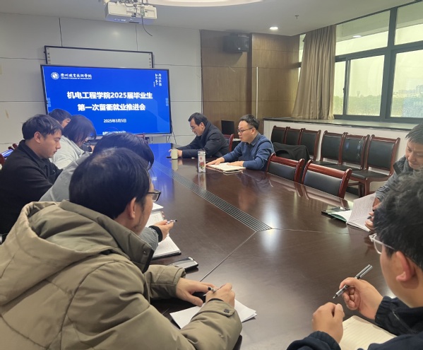 为进一步做好我院2025届毕业生就业工作,全力促进2025届毕业生高质量就业。3月5日下午,机电工程学院在307会议室召开本年度第一次留衢就业推进会。学院领导班子全体成员、全体毕业班主任和就业辅导员参加会议,会议由学院党总支书记朱峻主持。