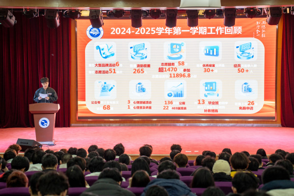 分团委学生会执行主席陈志斌对上学期学生会各部门工作内容进行总结报告,并对工作中的不足进行反馈与反思。上学期各部门在思想引领、学风建设、志愿服务、文体活动等主要任务中取得一定成效,强化了学生管理与服务,助力学生全面发展。