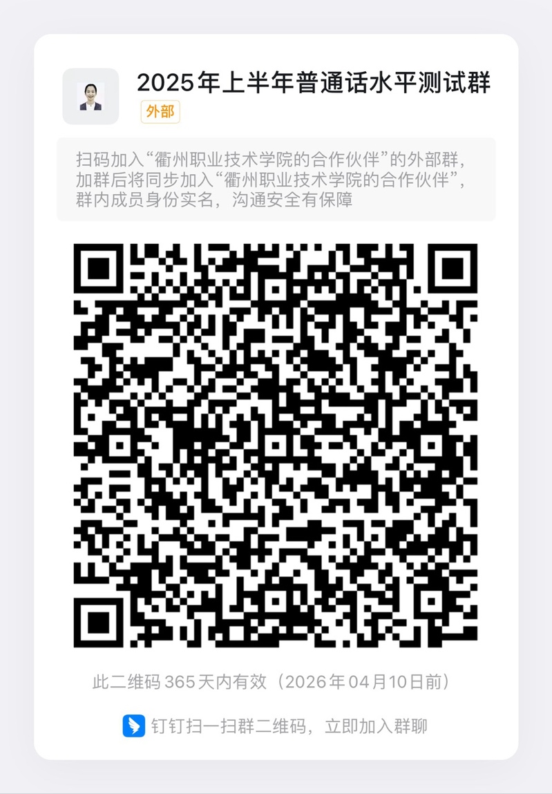 注意:请2025年春季普通话测试同学扫码进钉钉群