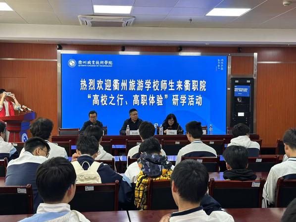 4月16日,浙江省衢州旅游学校校长助理江小三带领39名数控技术应用专业学生到我校开展中高职衔接专业研学实践活动。机电工程学院副院长徐文俊与江小三一行进行交流,智能制造装备技术专业负责人兰叶深、教科办主任吴成成参加了活动。