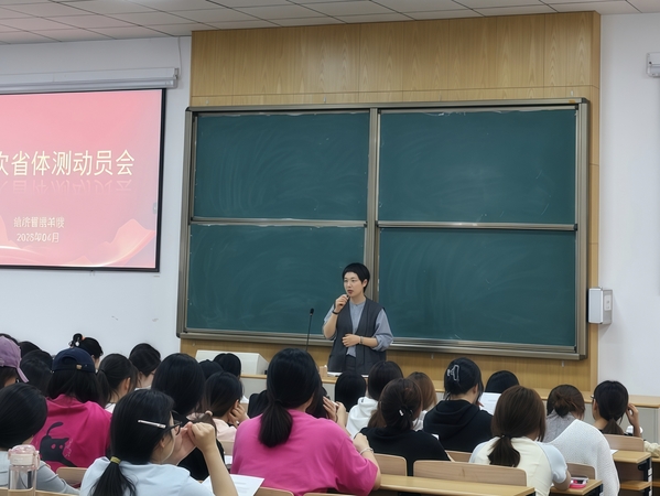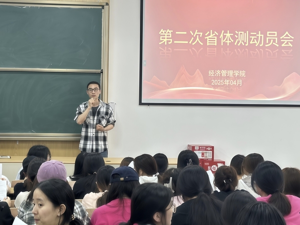 为迎接2025年浙江省高校学生体质健康抽测,进一步弘扬体育精神,4月18日,经济管理学院在阶西3-4教室召开第二次动员大会。学院党总支书记斯彬彬、副书记徐佩玉、辅导员代表及全体参测学生齐聚一堂,共同吹响备战体测的冲锋号角。