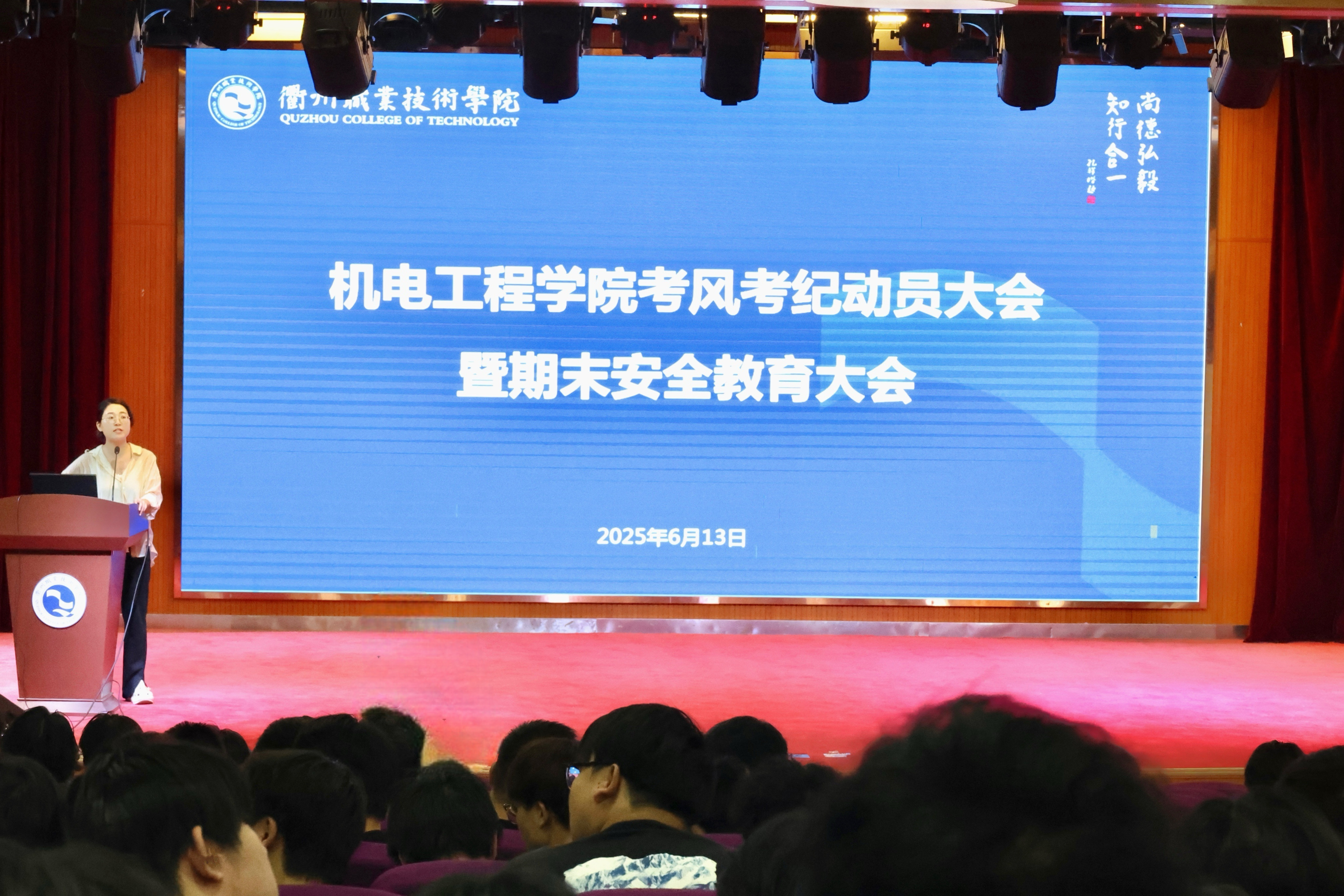为进一步强化学风建设,营造期末良好学习氛围,强化学生安全意识,近日,机电工程学院组织召开学风学纪建设暨期末安全教育大会,会议围绕学业事项强调及规划动员、诚信考试教育、素质拓展学分认定、劳动教育及期末安全提醒等核心内容展开。学院相关领导、辅导员、班主任与全体同学共话成长,为期末冲刺与假期安全保驾护航。