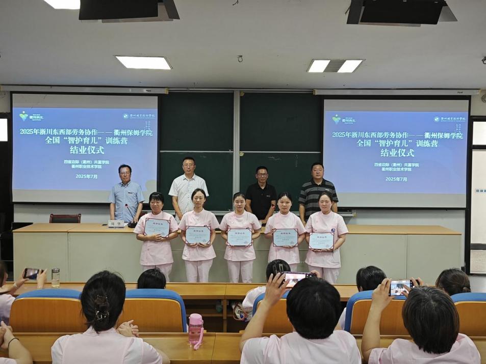 两地领导共同为优秀学员颁发了荣誉证书,并为全体学员颁发了结业证书。优秀学员代表在发言中承诺:“我将把所学知识运用到实际工作中,以更科学、更细致的方式照顾婴幼儿,持续学习提升专业水平,期待在育婴行业贡献力量,助力更多孩子健康快乐成长!”